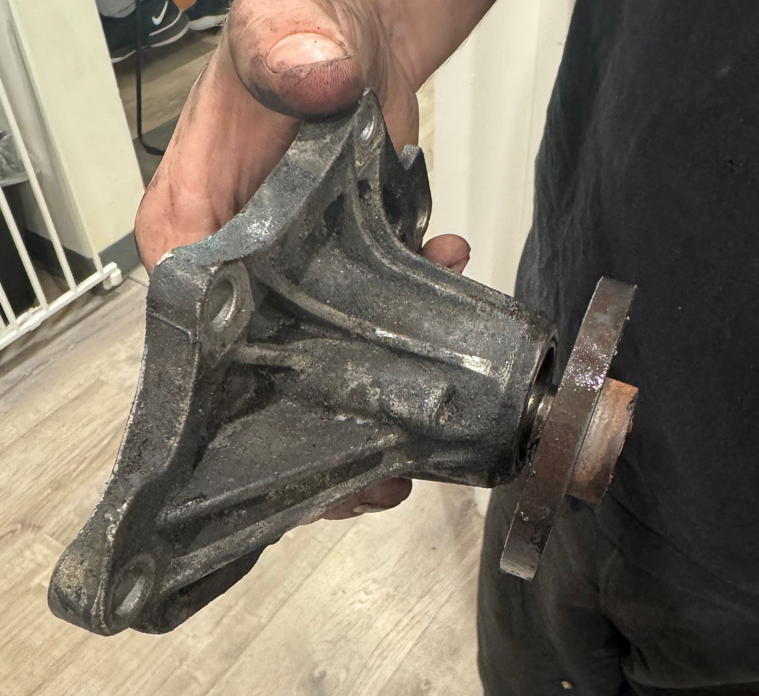 In this case the water pump outer shaft bearing failed. This caused the serpentine belt to break and the vehicle to lose power steering, at the same time the battery light came on due to the alternator no longer charging the electrical system.